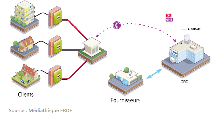 Les Gestionnaires de Réseaux de Distribution, ERDF, en charge de la distribution publique d’électricité de 95% du territoire et les 160 Entreprises Locales de Distribution (ELD) en charge de 5% du territoire, doivent mettre en œuvre des dispositifs permettant aux fournisseurs de proposer à leurs clients des prix différents suivant les périodes de l’année ou de la journée. En 2013, après des expérimentations menées par ERDF et par des ELD sous l’égide de la CRE, la généralisation des compteurs communicants a été décidée.