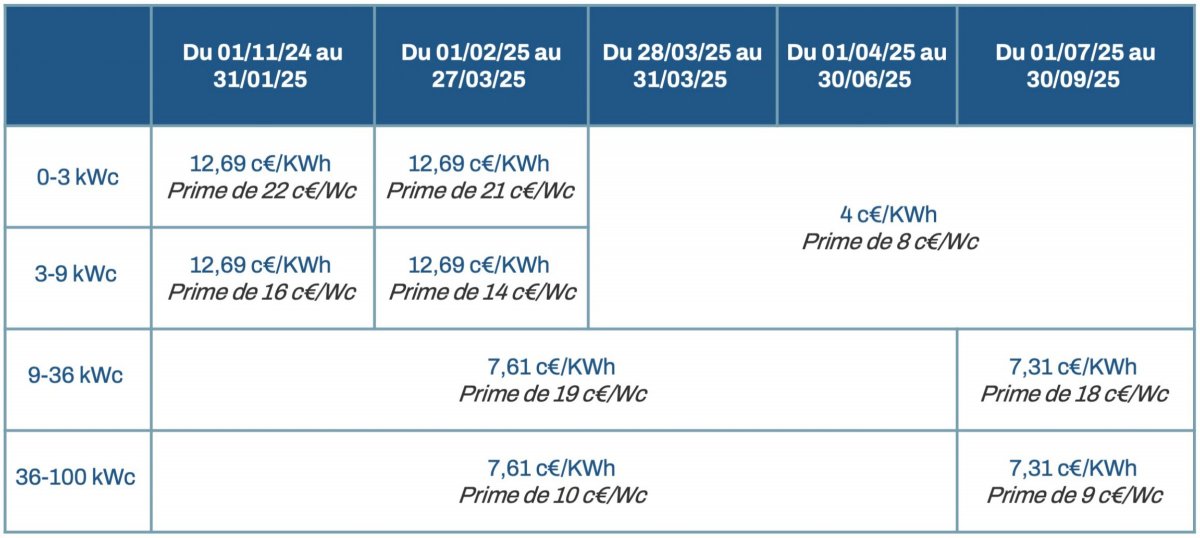 Tarifs et primes pour le soutien via l’obligation d’achat en 2025 :
