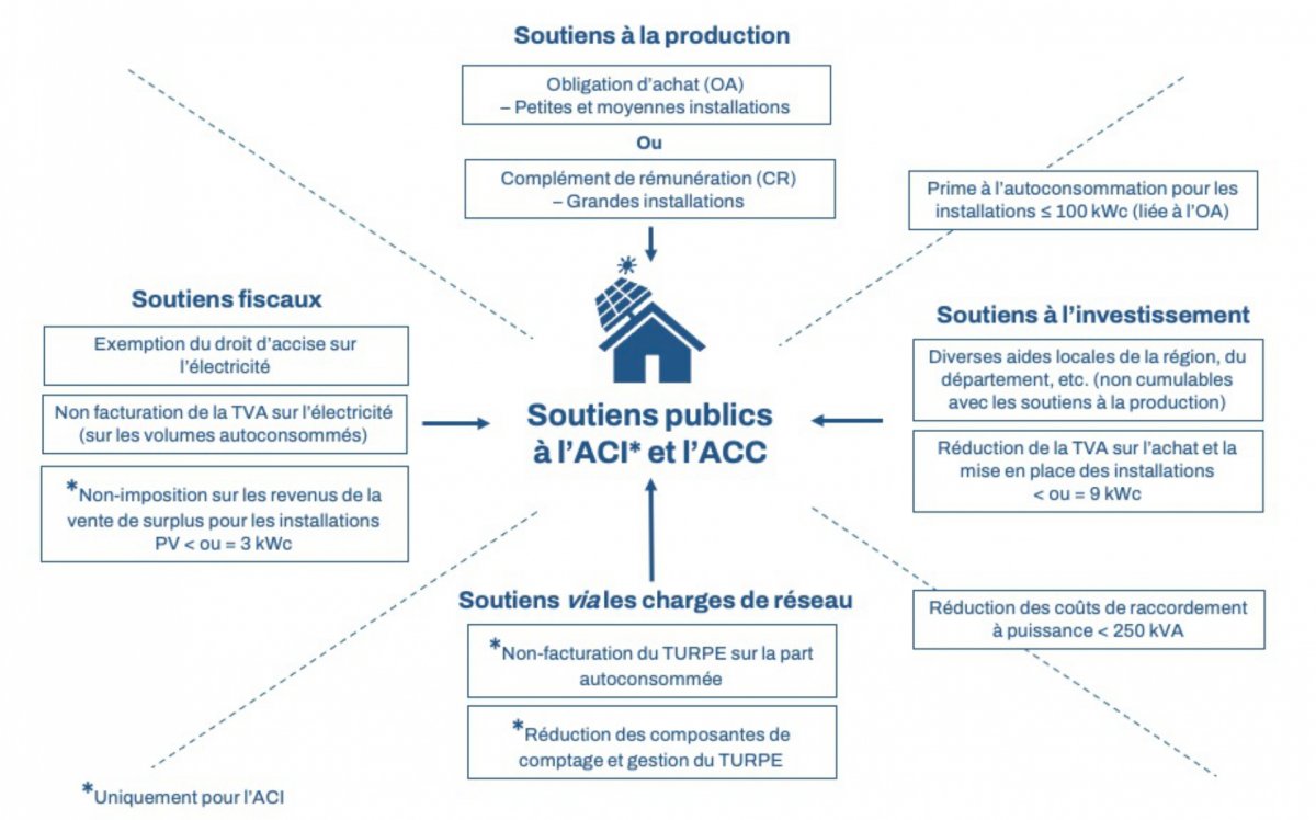Conscients de cet enjeu, et compte-tenu du rôle que joue l’autoconsommation dans l’atteinte des objectifs nationaux fixés dans la programmation pluriannuelle de l’énergie (PPE) en matière de développement des énergies renouvelables [4], les pouvoirs publics ont ainsi mis en place plusieurs formes de soutien à l’autoconsommation pour encourager son déploiement.