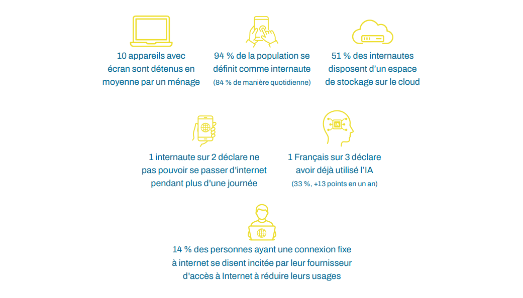 L’édition 2025 du Baromètre du numérique, publié par l’Autorité de régulation des communications électroniques, des postes et de la distribution de la presse (l’Arcep), illustre ainsi l’importance du numérique dans nos sociétés :